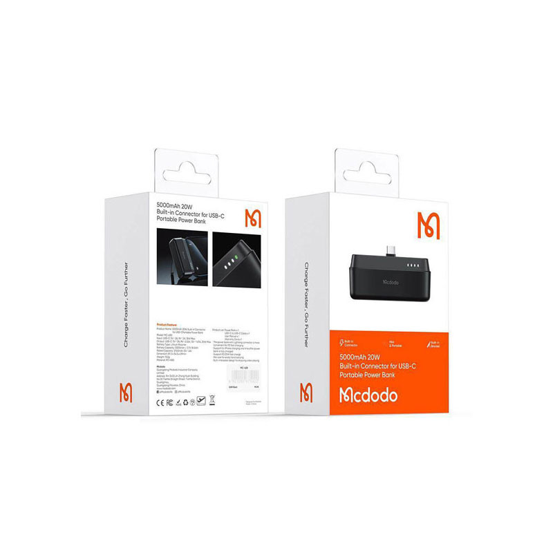Mcdodo MC-6301 is a compact 5000mAh power bank designed for users who value convenience and performance. With its fast 20W charging and built-in USB-C connector.